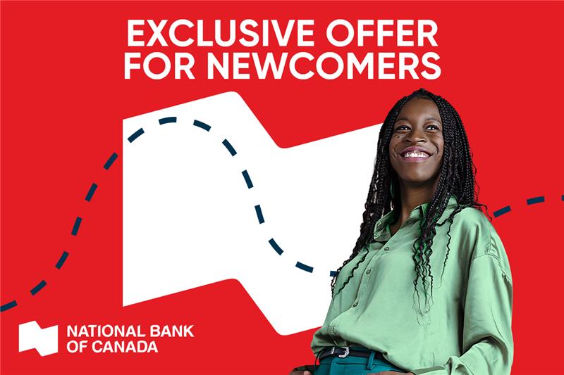 National Bank of Canada’s exclusive offer for newcomers includes a bank account with no fixed monthly fees for 3 years, 100$ cashback after opening a chequing account, a Mastercard credit card, reduced fees on international transfers, access to National Bank’s legal assistance service, free of charge, and much more. This offer is valid for newcomers who have arrived in Canada within the past 5 years.